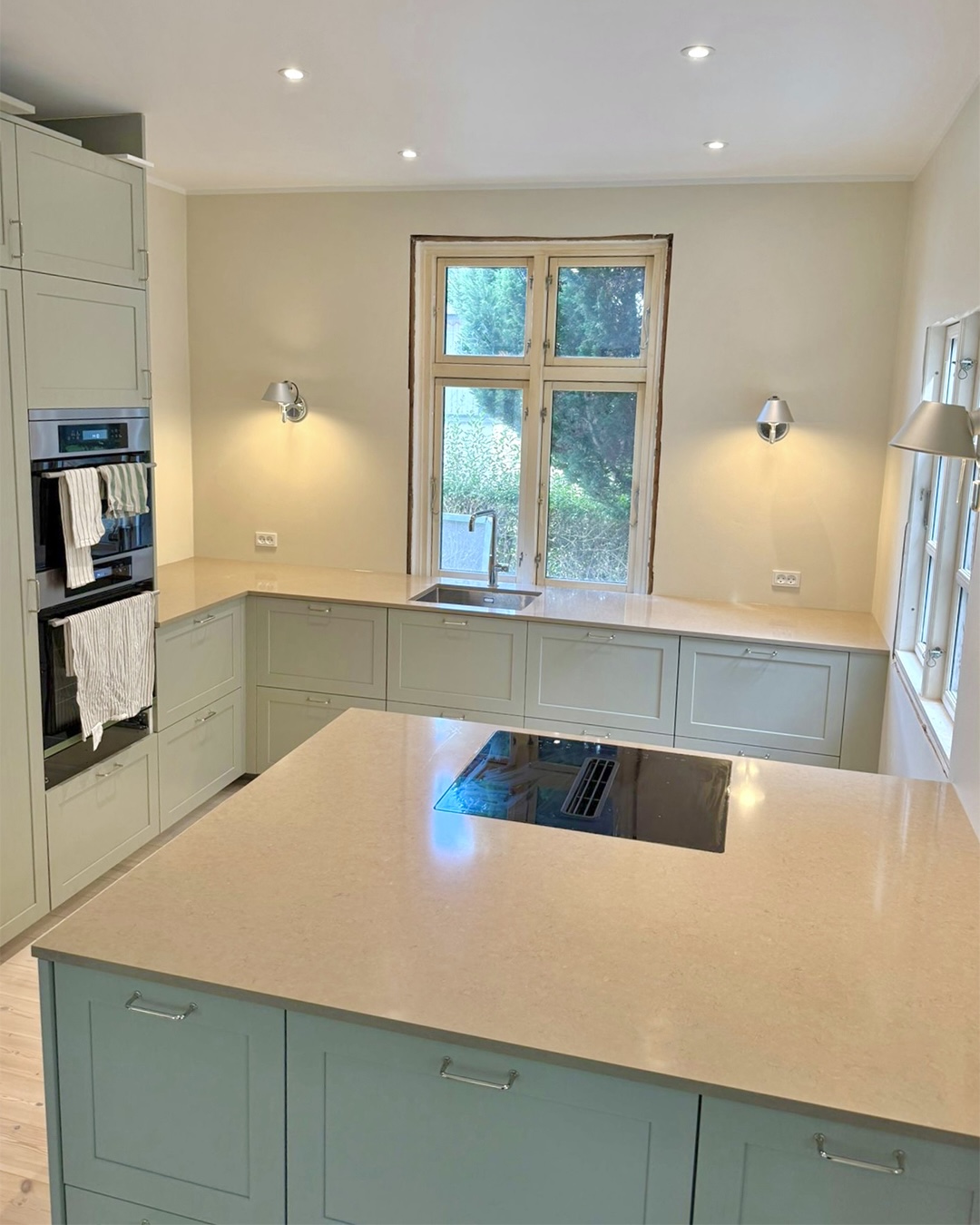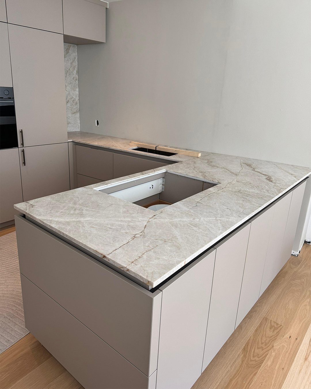 Vores galleri viser et udvalg af tidligere projekter – fra stilrene køkkener til specialløsninger i erhverv. Hver bordplade er tilpasset kundens ønsker i både form, materiale og finish.